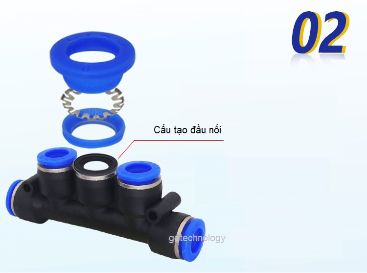 Ứng dụng đầu nối khí PKGChia 5 cổng 5 đầu ống dùng cắm các ống phi: 4,6,8,10,12mm (lệch nhau)