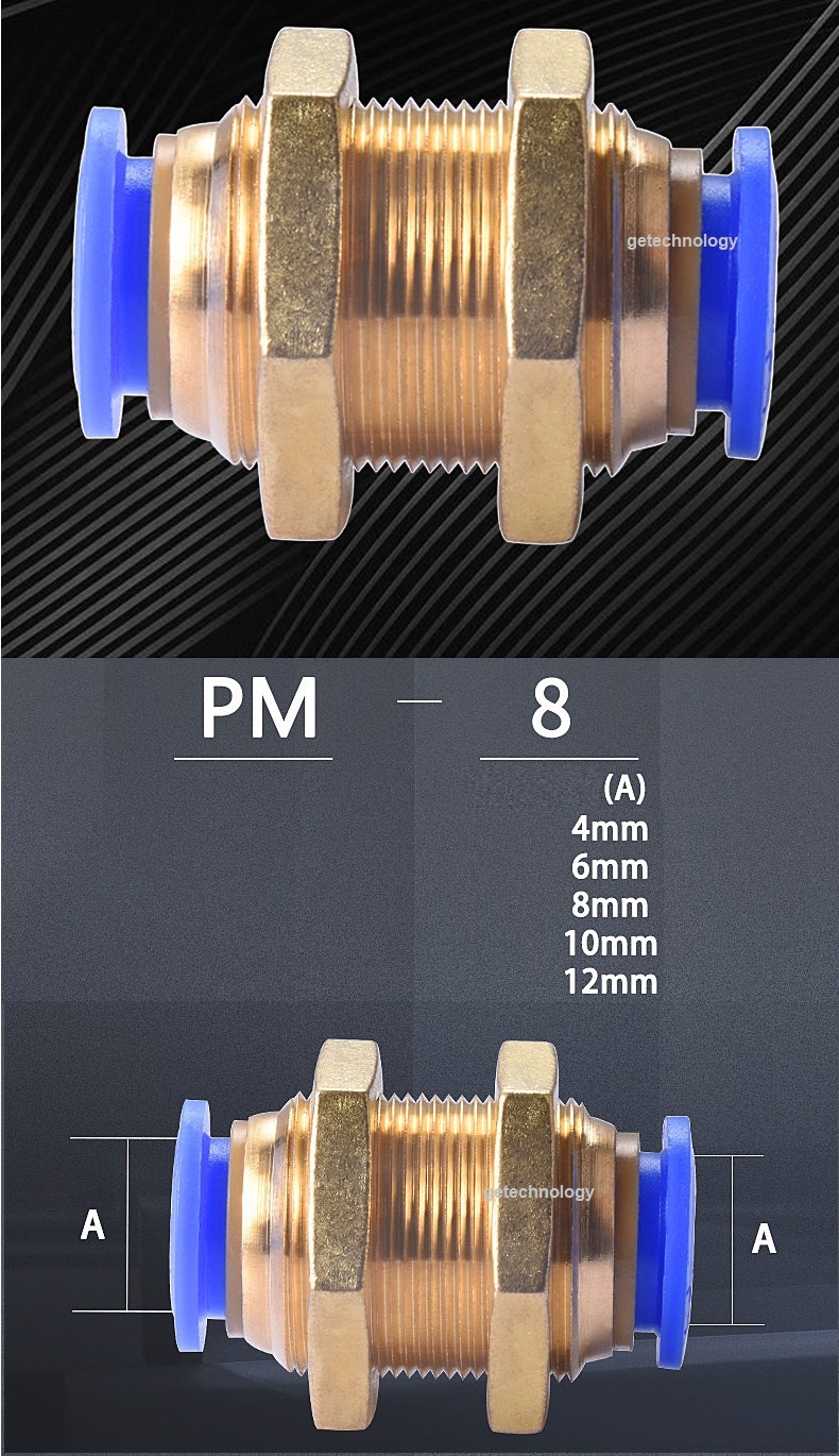 Đầu nối nhanh PM, đầu nối khí PM 2 đầu PM-4 PM-6 PM-8 PM-10 PM-12 Đầu nối hơi nhanh 2 đầu PM4/PM6/PM8 /PM10/PM12