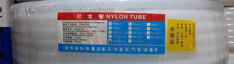 ống dây khí Nylon PA11-6 ống 12×1.5mm, nhiệt độ hoạt động: -35°C~125°C; áp suất làm việc: 3.2 Mpa