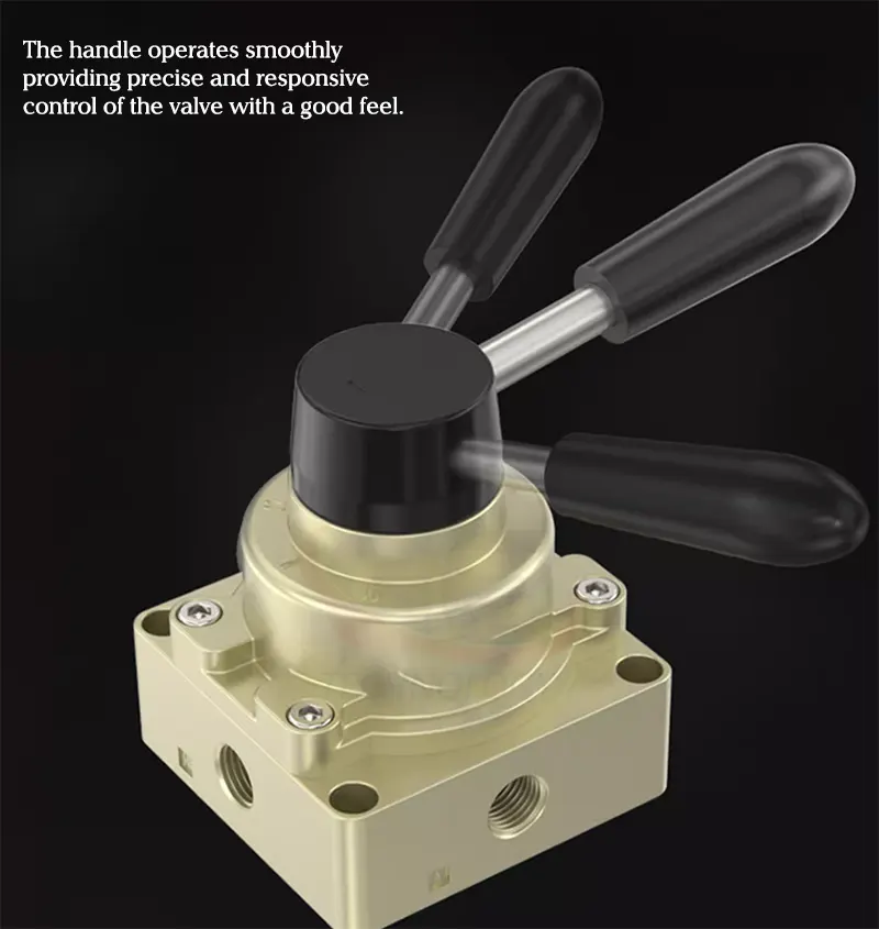 Khi người dùng gạt cần, cơ cấu bên trong van thay đổi, chuyển hướng dòng khí đến các thiết bị cần điều khiển. Với thiết kế 4 cổng 3 vị trí, van cho phép: